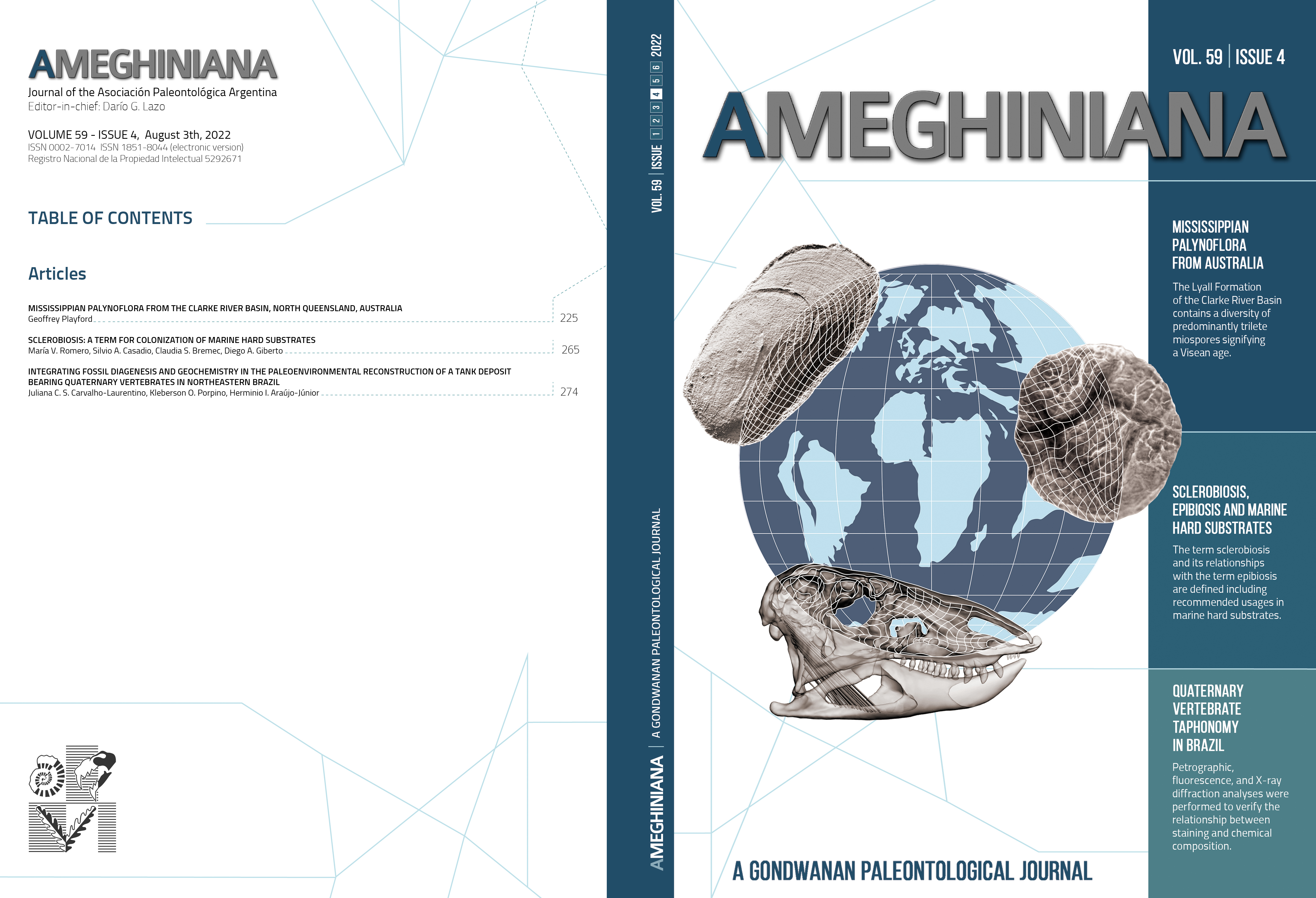 HIGHLIGHTS -MISSISSIPPIAN PALYNOFLORA FROM AUSTRALIA -SCLEROBIOSIS, EPIBIOSIS AND MARINE HARD SUBSTRATES -QUATERNARY VERTEBRATE TAPHONOMY IN BRAZIL