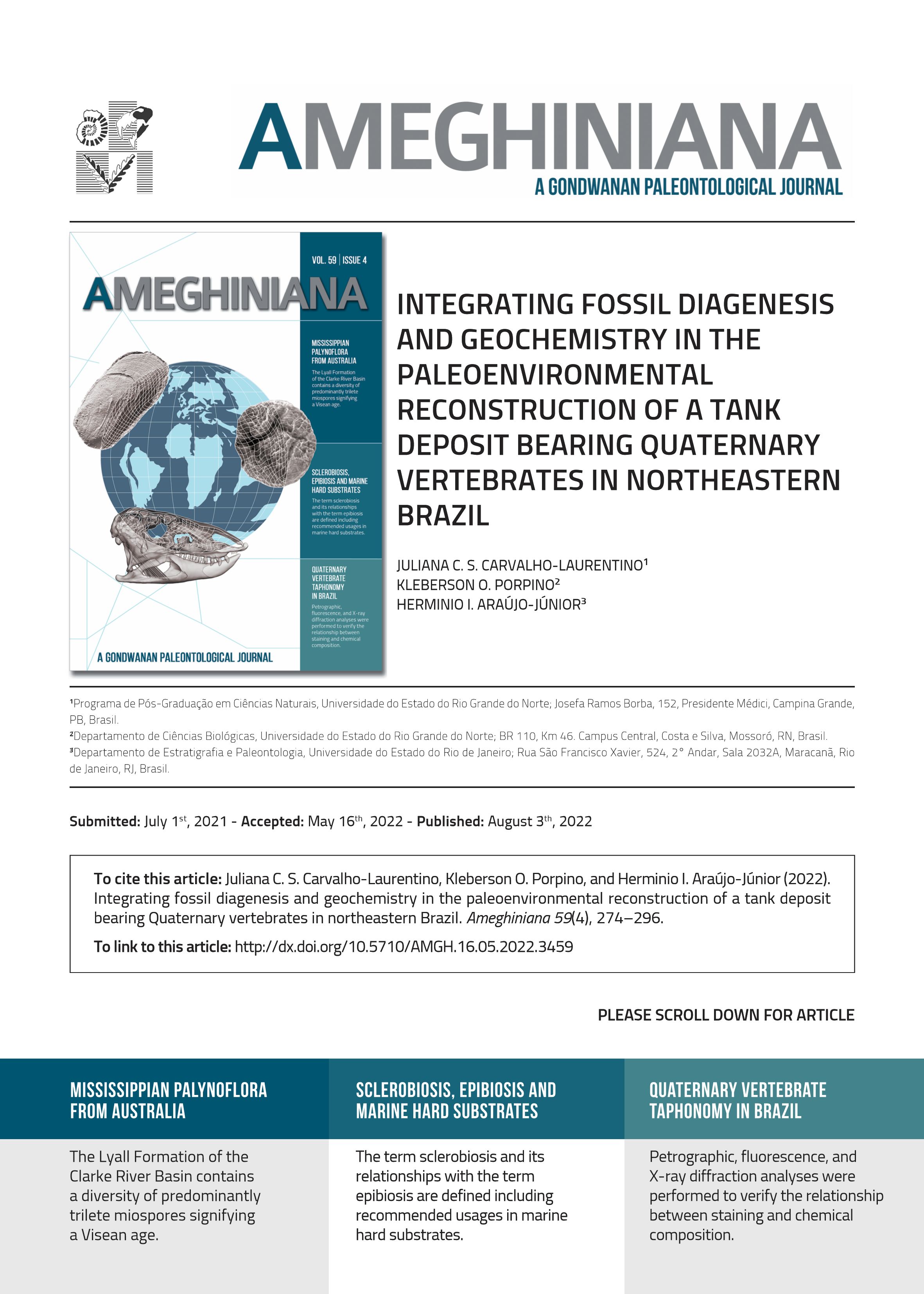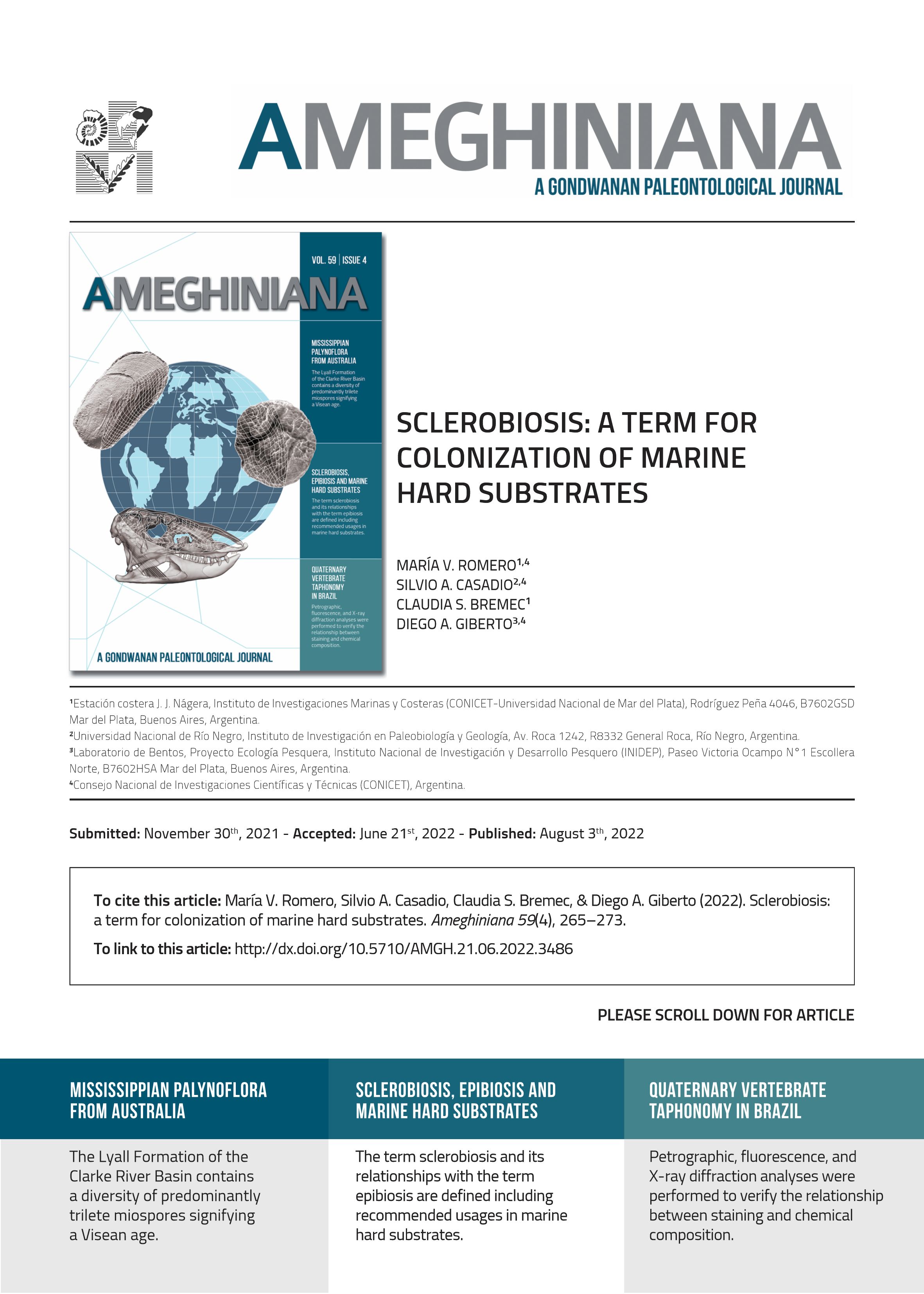 HIGHLIGHTS -MISSISSIPPIAN PALYNOFLORA FROM AUSTRALIA -SCLEROBIOSIS, EPIBIOSIS AND MARINE HARD SUBSTRATES -QUATERNARY VERTEBRATE TAPHONOMY IN BRAZIL