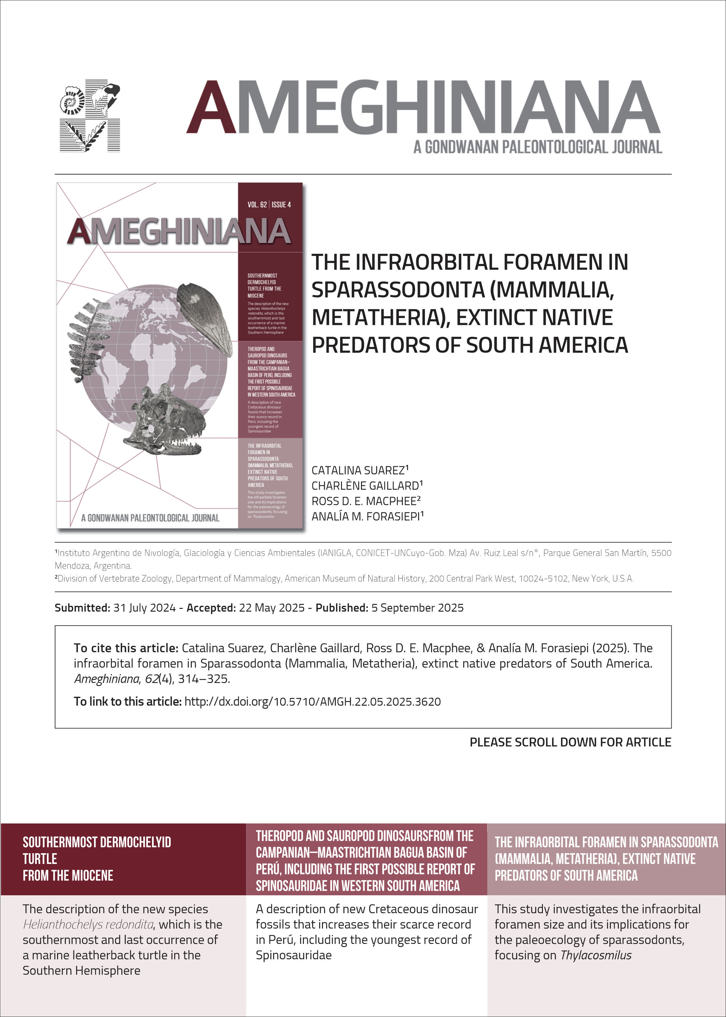 The THE INFRAORBITAL FORAMEN IN SPARASSODONTA (MAMMALIA, METATHERIA), EXTINCT NATIVE PREDATORS OF SOUTH AMERICA