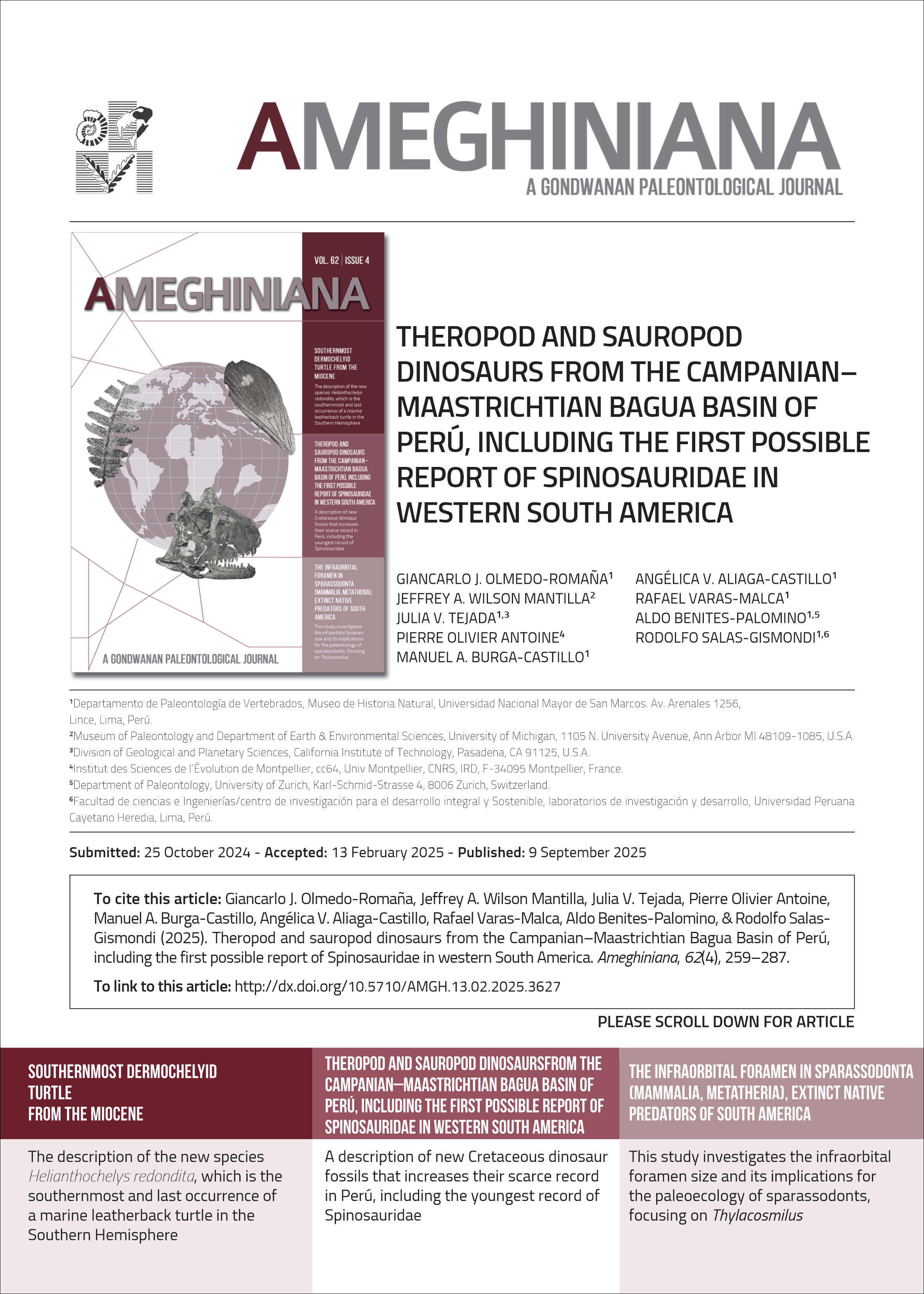 CAMPANIAN-MAASTRICHTIAN DINOSAURS FROM THE BAGUA BASIN OF PERÚ: FIRST POSSIBLE REPORT OF SPINOSAURIDAE IN WESTERN SOUTH AMERICA